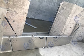 翼展型防洪門適合擋水高度不高,方便開合,占地面積要求較小的場合,兩邊由阻尼缸連接,放下去時緩慢安全。